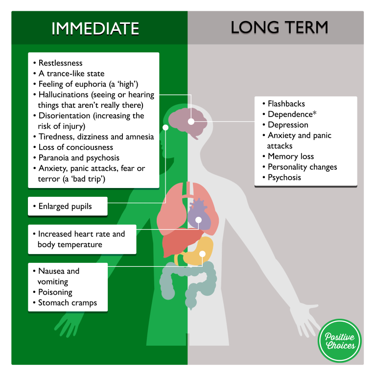 The effects of hallucinogens can be immediate or long-term, as listed in the table below.