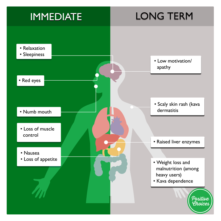 The effects of kava can be immediate or long-term, as listed in the table below.